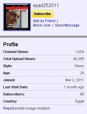 أعتقد أنه يوجد الكثير من الفيديوهات التي تخون 6 ابريل لكن هو اختار هذا بالذات لأنه بالتأكيد صاحب الفيديو . اذا قمت بالدخول على حساب أو "قناة" eyad252011 ) صاحب الفيديو على اليوتيوب ( و هو يسمى و جدت أن صورة حسابه هي صورة للمخلوع مباركو مكتوب بها "حقك هيرجع":